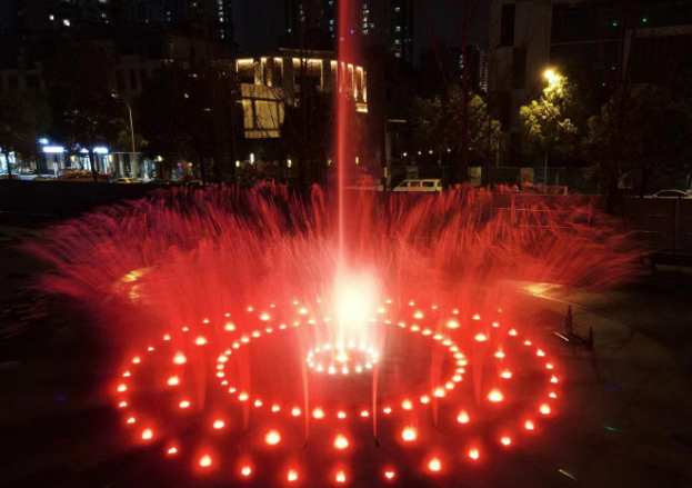 成都長(zhǎng)冶酒店廣場(chǎng)旱地音樂(lè)噴泉調(diào)試完成