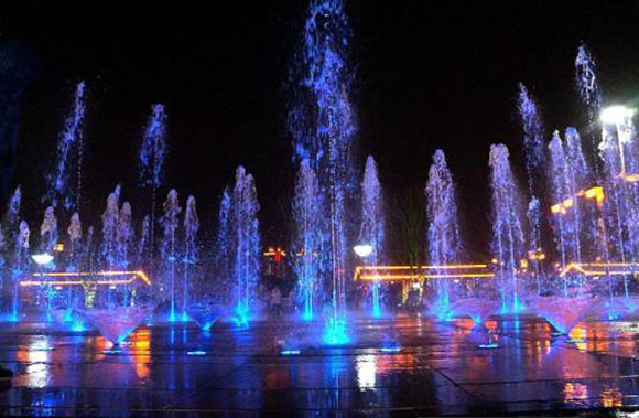 放置在地下,表面飾以光滑美麗的石材,可鋪設(shè)成各種圖案和造型。當(dāng)音樂響起時(shí),水花從地下噴涌而出,在彩燈照射下,地面尤如五顏六色的鏡面,將空中飛舞的水花映襯得無比嬌艷,使人流連往返。停噴后,不阻礙交通,可照常行人,非常適合于賓館、飯店、商場(chǎng)、大廈、街景小區(qū)等。