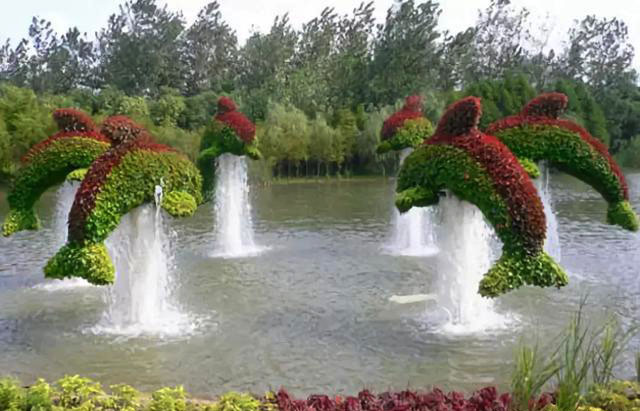 水景小品是從景觀小品演化而來(lái)的,把傳統(tǒng)的景觀小品融入水、燈光的原素,使景觀小品更靈動(dòng),更具活力。常見(jiàn)的有雕塑噴泉、人造漣漪等