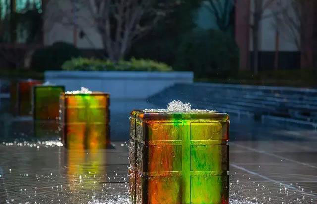旱地音樂噴泉放置在地下,表面飾以光滑美麗的石材,可鋪設(shè)成各種圖案和造型。當音樂響起時,水花從地下噴涌而出,在彩燈照射下,地面尤如五顏六色的鏡面,將空中飛舞的水花映襯得無比嬌艷,使人流連往返。停噴后……